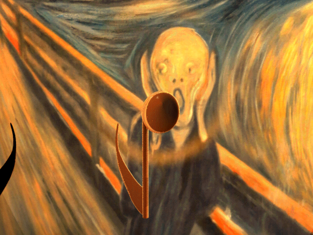 This clip is “just the banshees,” without an accompanying 1/10th speed drone. It cuts some four minutes of frankly repetitive music, by squeezing out the interludes between patterns. Download (18:06, 42MB). The drone tempo was slowed from 60 BPM down to 6, after which the voice effects were added. The note spacing conforms to two fifths stacked vertically (i.e., scale degrees 1 – 5 -10). All very Bartókian. I prefer this version, myself, and have deleted the longer audio file. I decided the drone didn’t contribute much other than to stretch out the running time unnecessarily.