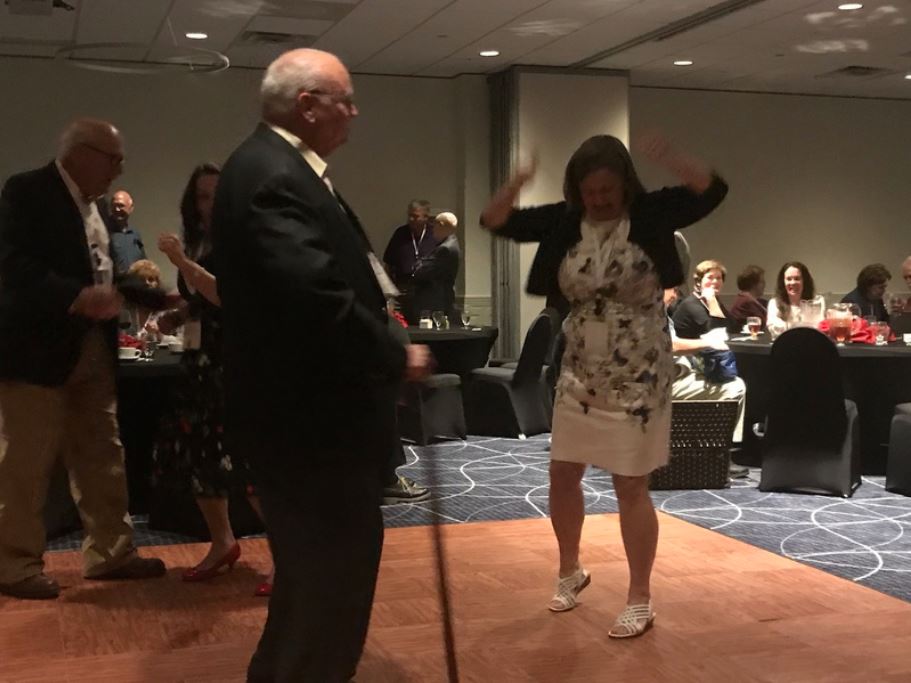 That’s Cathy Randall Kelso to my left. I’m attempting The Twist. Not a trivial endeavor with a waist like mine: